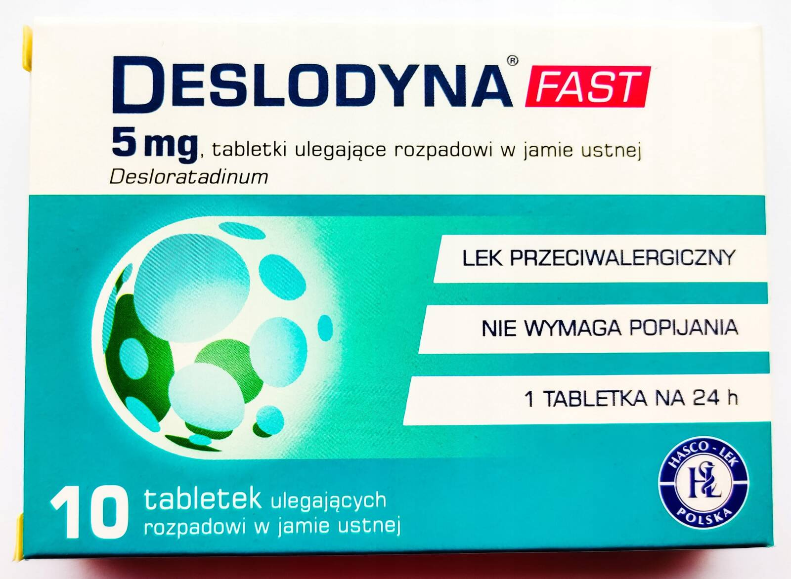 Deslodyna fast, tabletka ulegająca rozpadowi w jamie ustnej, zawiera desloratadynę, która jest lekiem przeciwhistaminowym.