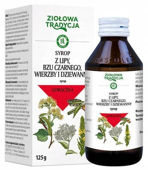 Syrop z lipy, bzu czarnego, wierzby i dziewanny