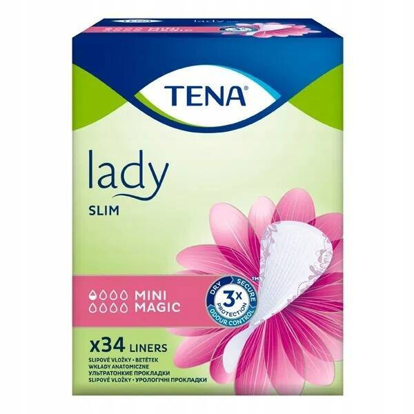 TENA Lady Slim Mini Magic to najmniejsza wkładka TENA, która zapewnia wyjątkowo niezawodną ochronę przy kropelkowym nietrzymaniu moczu Mimo że rozmiarami podobna jest do zwykłej wkładki higienicznej, to charakteryzuje się dużo większą chłonnością dzięki technologii microPROTEX™. Ta specjalistyczna wkładka na kropelkowe nietrzymanie moczu skutecznie zamyka płyn wewnątrz. Jest tak cienka, że prawie jej nie zauważysz. Idealna do noszenia po prostu na wszelki wypadek, aby kropelkowe nietrzymanie moczu nie wpłynęło na Twoją pewność siebie.