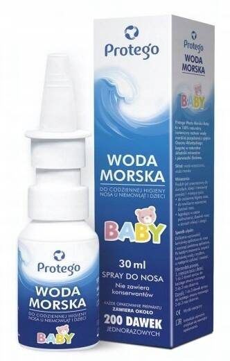 Protego Woda Morska Baby to w 100% naturalny izotoniczny roztwór wody morskiej pozyskanej z głębin Oceanu Atlantyckiego bogatej w naturalne składniki mineralne i pierwiastki śladowe.