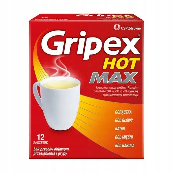 Gripex® Hot Max to wieloskładnikowy lek, który dzięki maksymalnym dawkom substancji i precyzyjnej sile działaniazwalcza nasilone objawy przeziębienia i grypy.